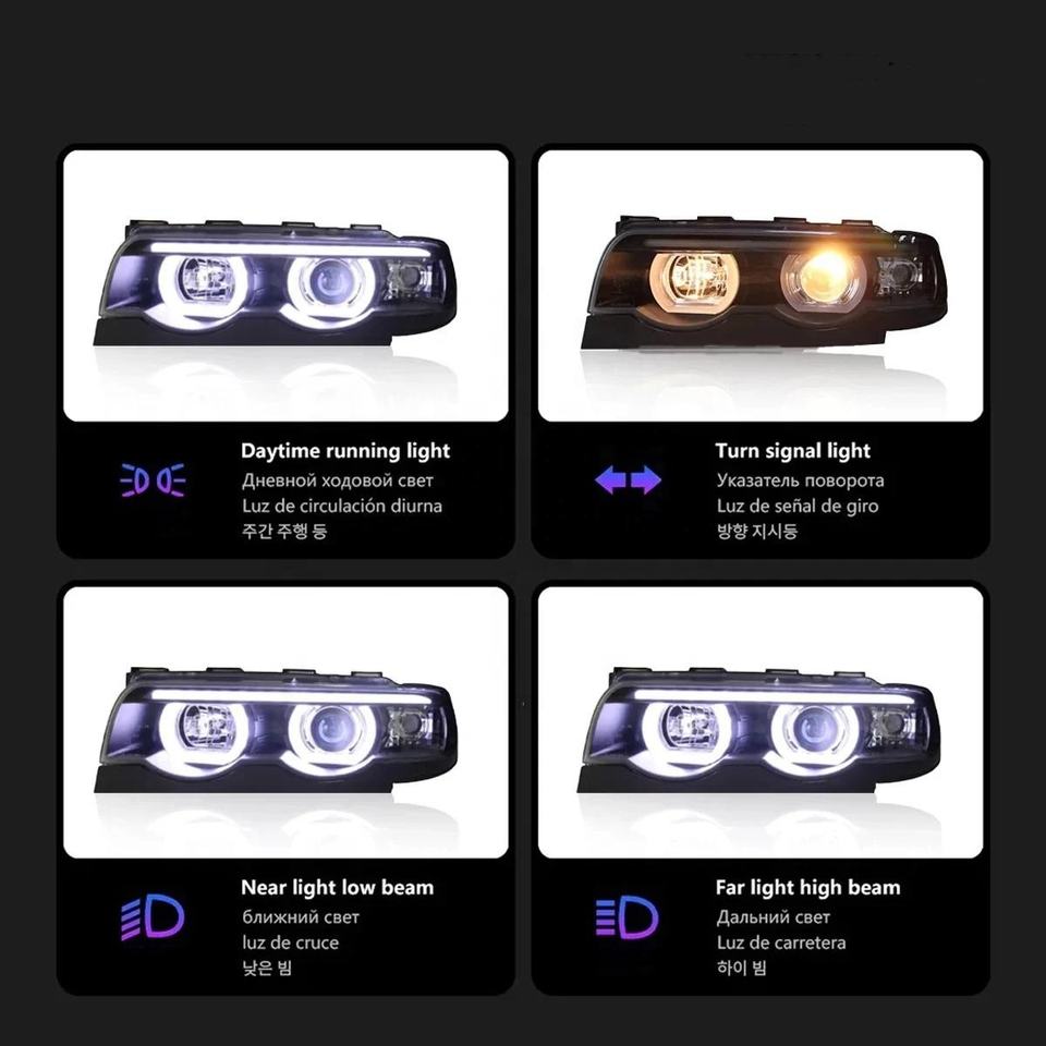 Série 7 E38 730i 740i LED phare modifié DRL 1998-2002 mise à niveau lampe avant clignotant faisceau haut projecteur oeil d'ange pour BMW