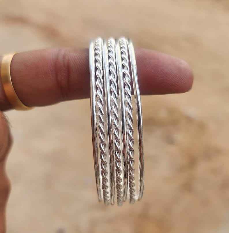 Ensemble de 7 bracelets en argent sterling 925, épais, lourds, empilables, cadeau de mariage pour elle