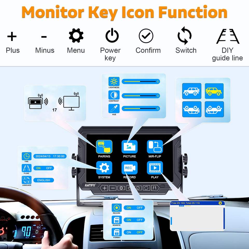 Caméra Arrière sans fil, Caméra de recul, Moniteur, Caméra de reverse