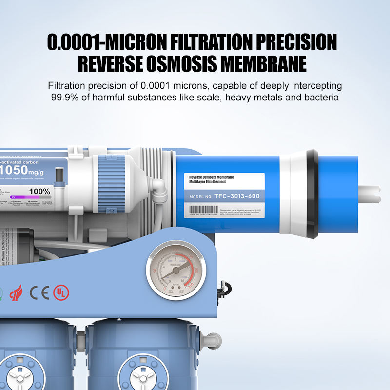 Purificateur d'eau RO sans réservoir 7 étapes 600 GPD avec UV LED profond et alcalin pour usage domestique en cuisine, certifié CE