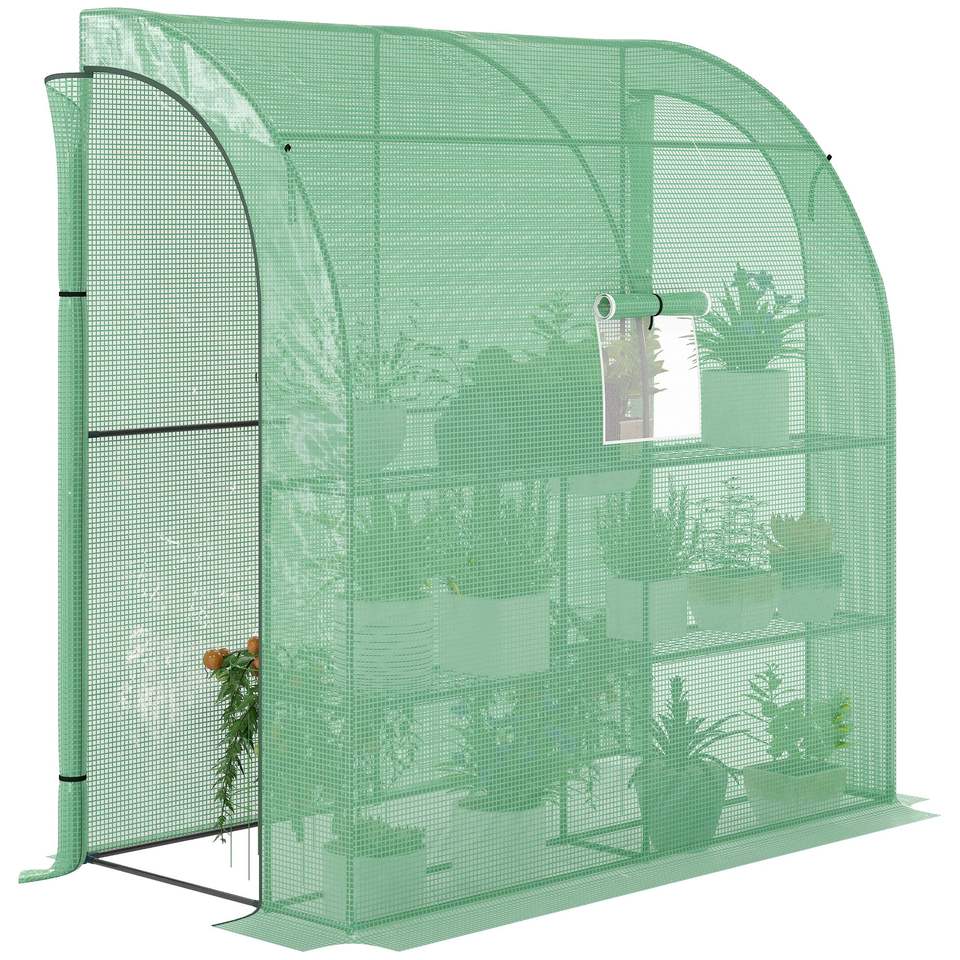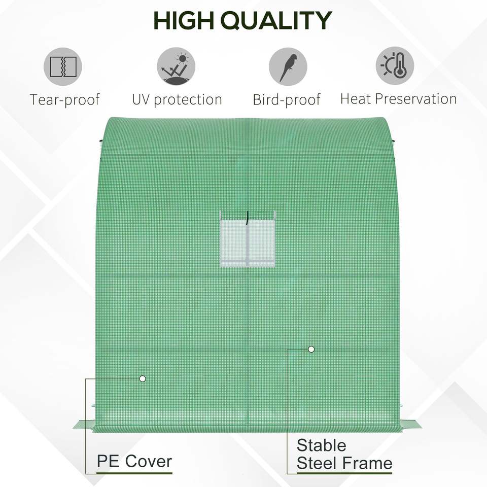 Serre autoportante 7 x 3 x 7 avec 2 portes enroulables et 3 étagères métalliques, couverture en PE pour pépinière