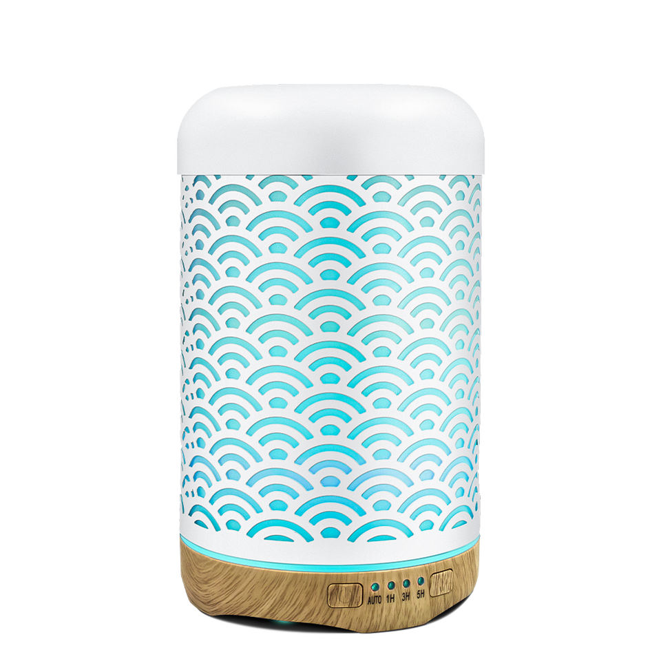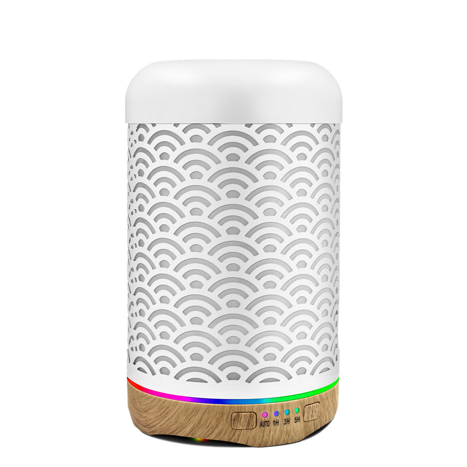 Humidificateur d'air d'huile essentielle de bureau d'humidification ultrasonique de 7 lumières de couleur avec le diffuseur d'arôme de fer d'art creux blanc