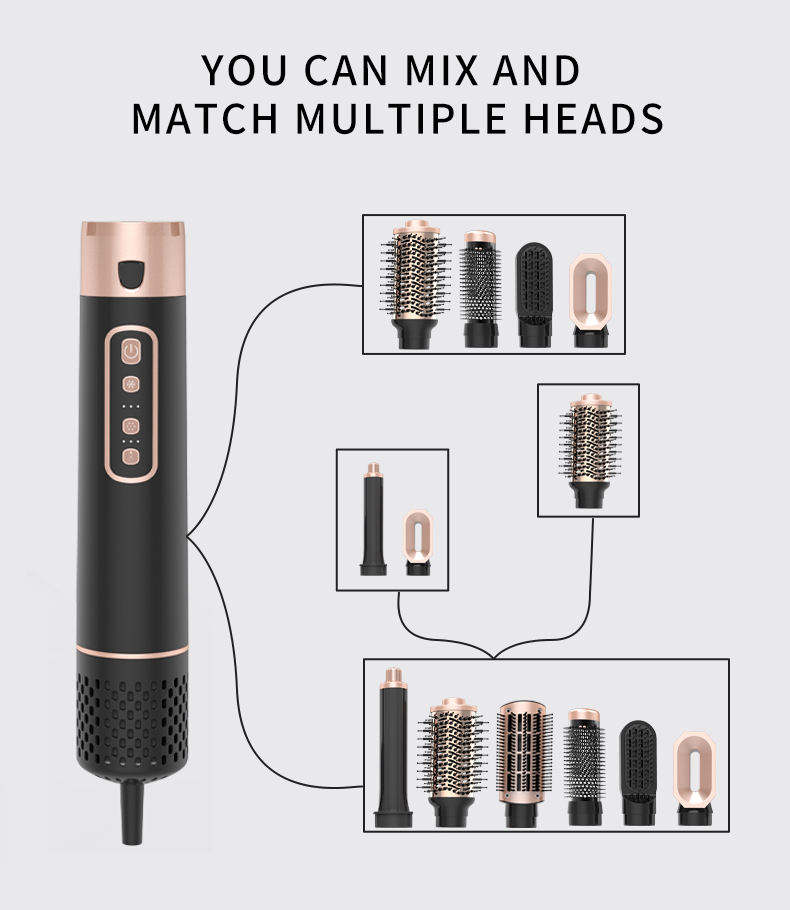 Ensemble de brosses sèche-cheveux à air chaud 7 en 1 avec 110 V et 220 V pour cheveux naturels