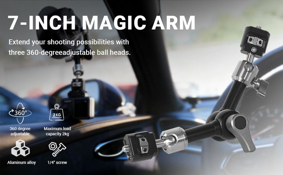 Bras magique de 7 pouces Bras de friction magique extensible réglable et équipé d'un siège de chaussure chauffant Vis de trépied de 1/4 pouces