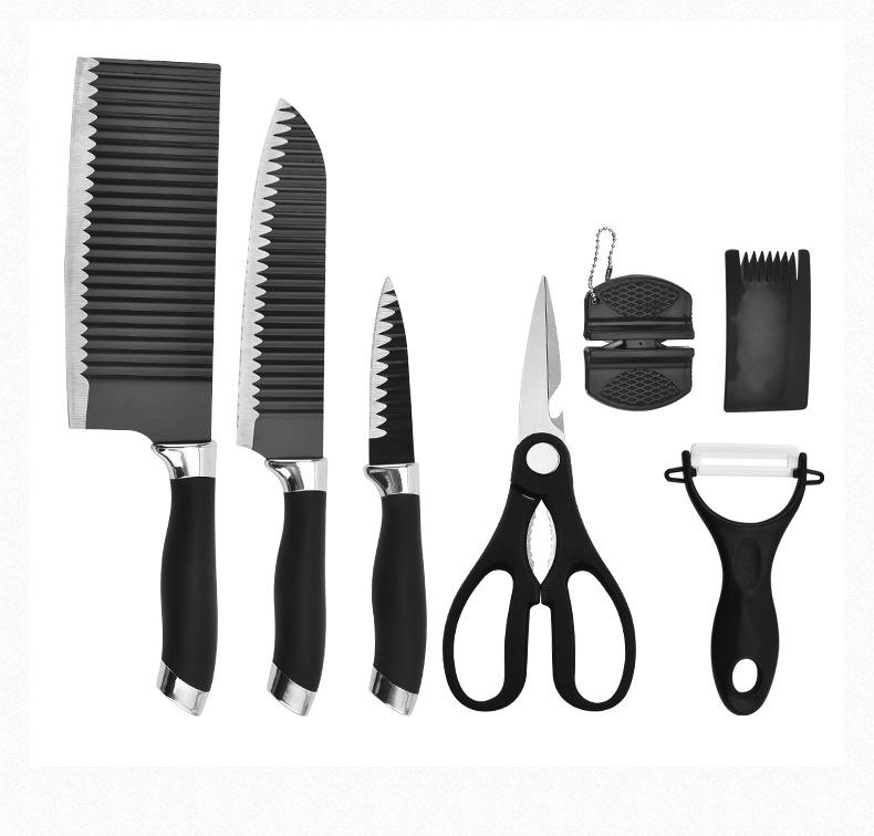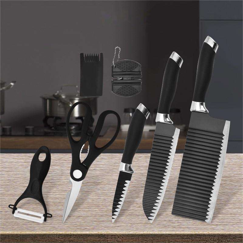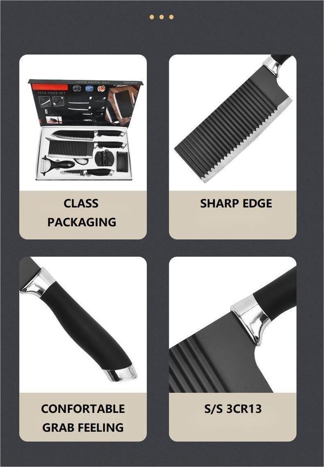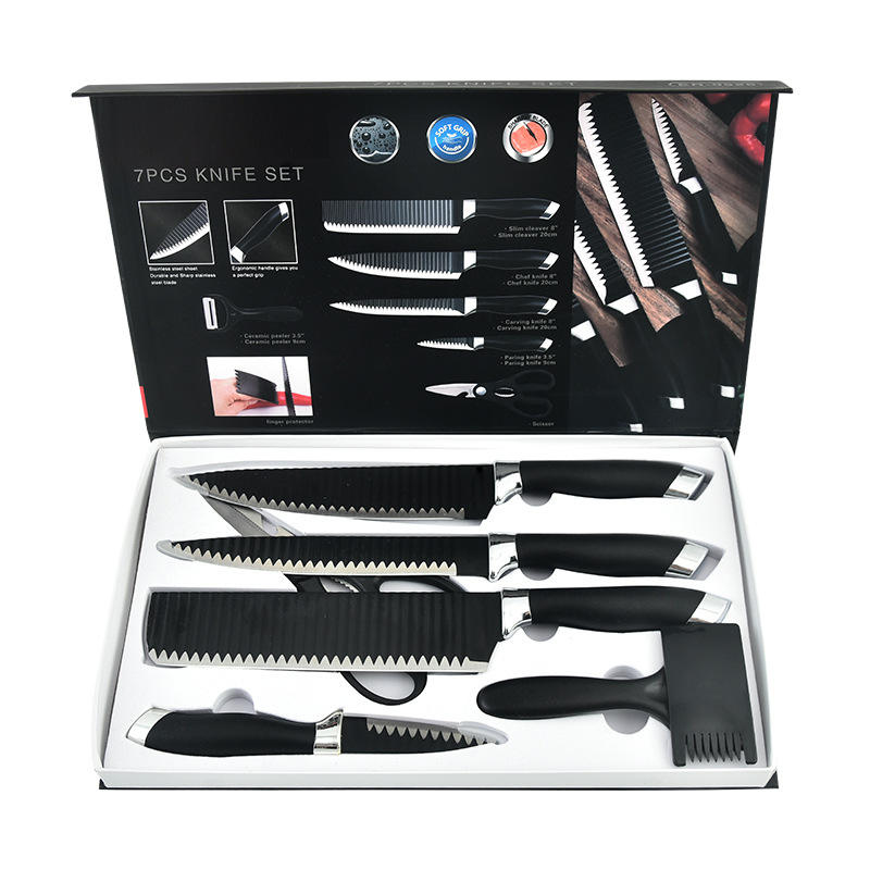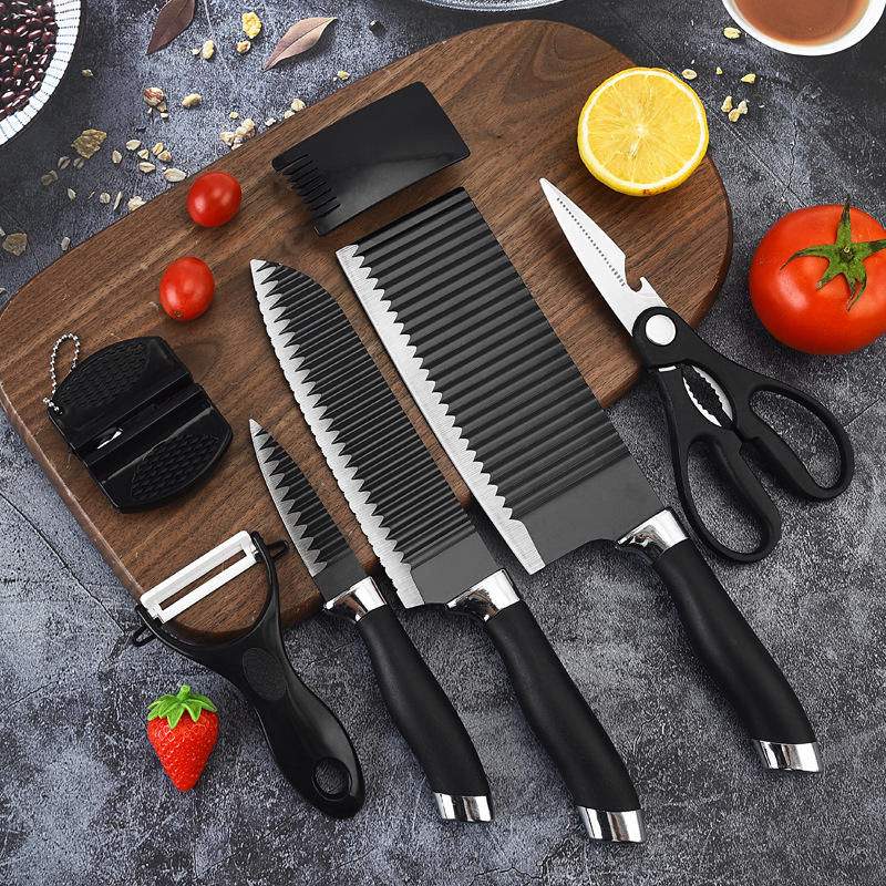Ensemble de couteaux de cuisine à motif ondulé de 7 pièces, ensemble de couteaux cadeau d'affaires, acier inoxydable 3CR13, personnalisation acceptable