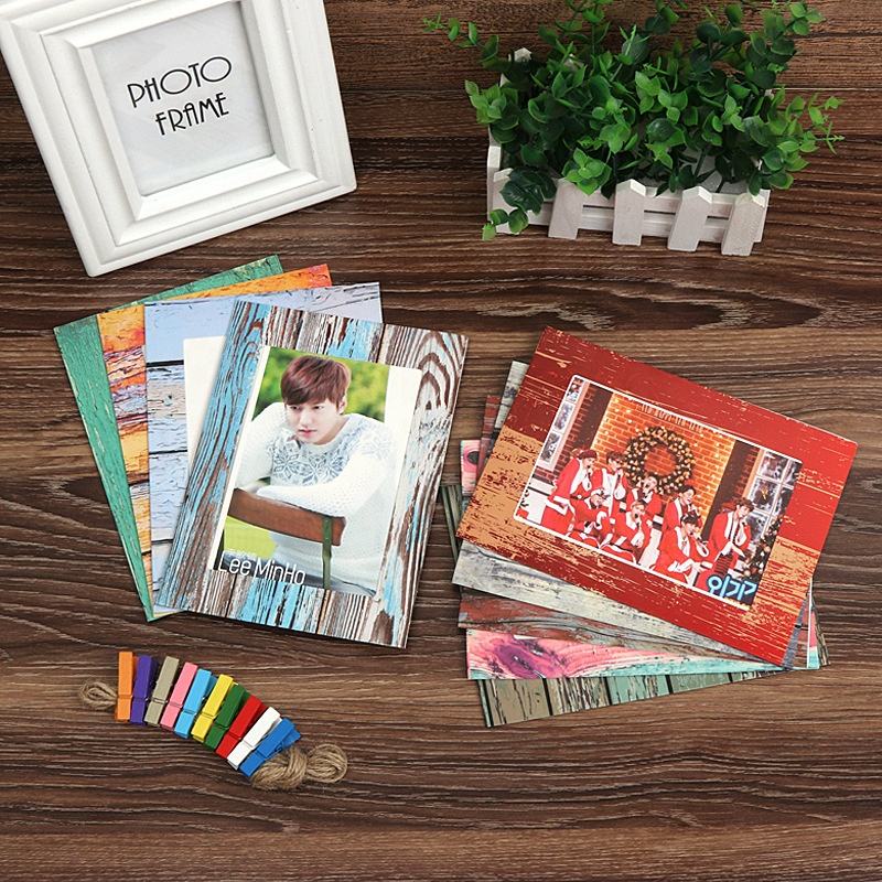 7 pouces creative bois grain joint suspendu d'envoyer clip corde suspendue papier peint photo cadre photo mur