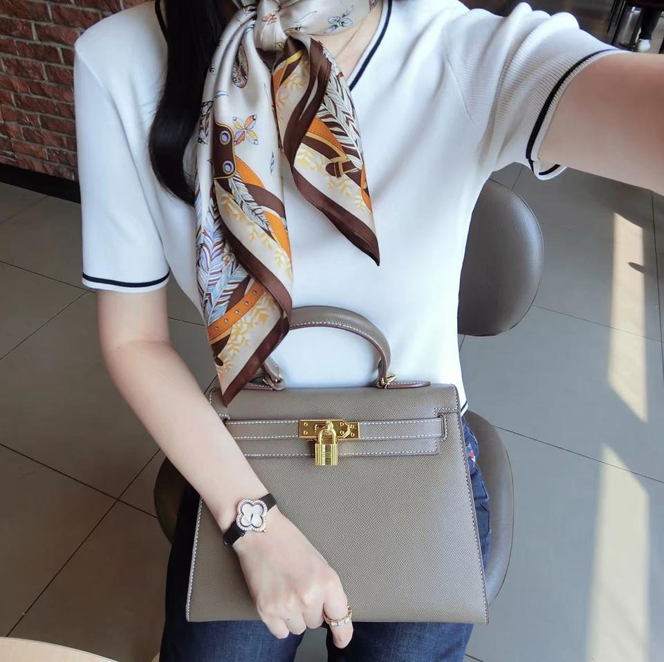 Foulard carré de luxe 70x70 cm en soie 100% premium avec imprimé nœuds pour femme - Doux pour la peau et multifonctionnel