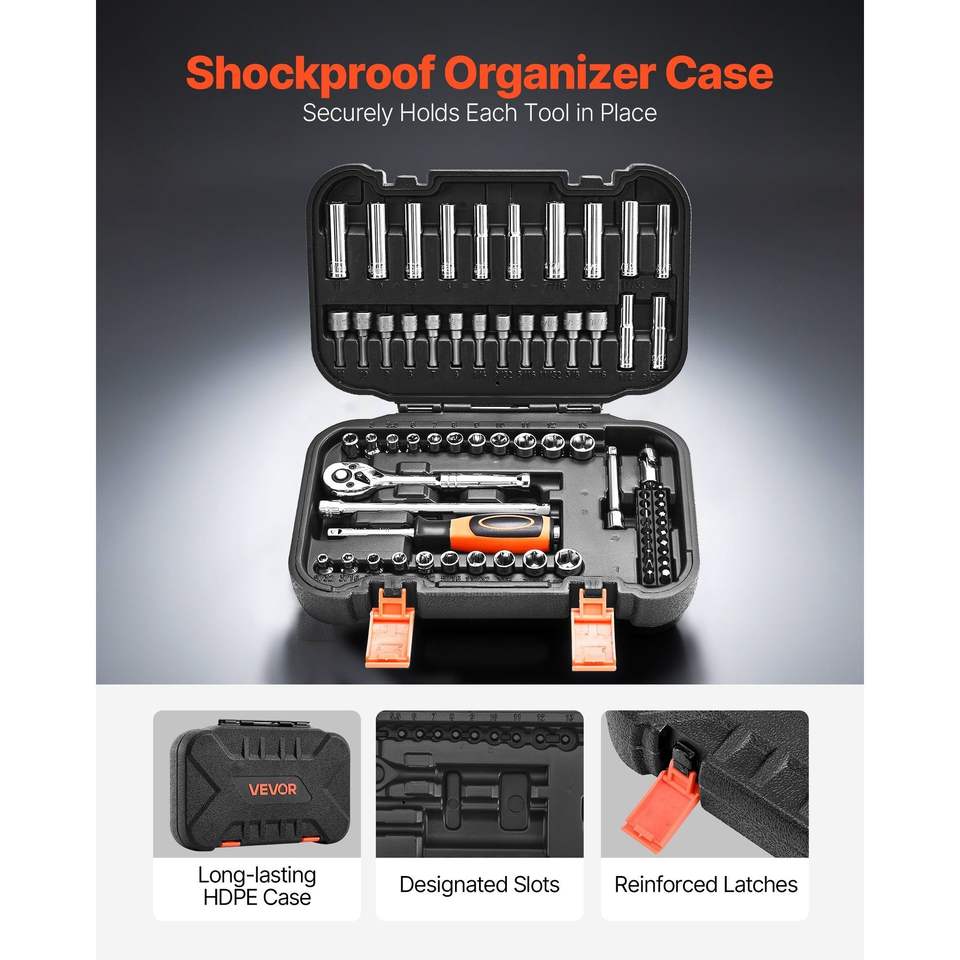 Jeu de douilles et de cliquets de 70 pièces, 1/4 pouce, SAE métrique, profondes et peu profondes, en acier allié CR-V, embouts pour la réparation automobile, kit d'outils de mécanicien