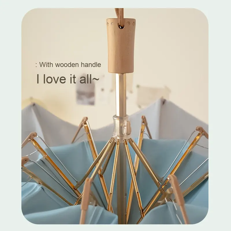 Parapluie en bois massif double usage avec protection UV à 70 %, 8 baleines, couleur dégradée fraîche, commande manuelle, moderne, personnalisé et créatif, pare-soleil