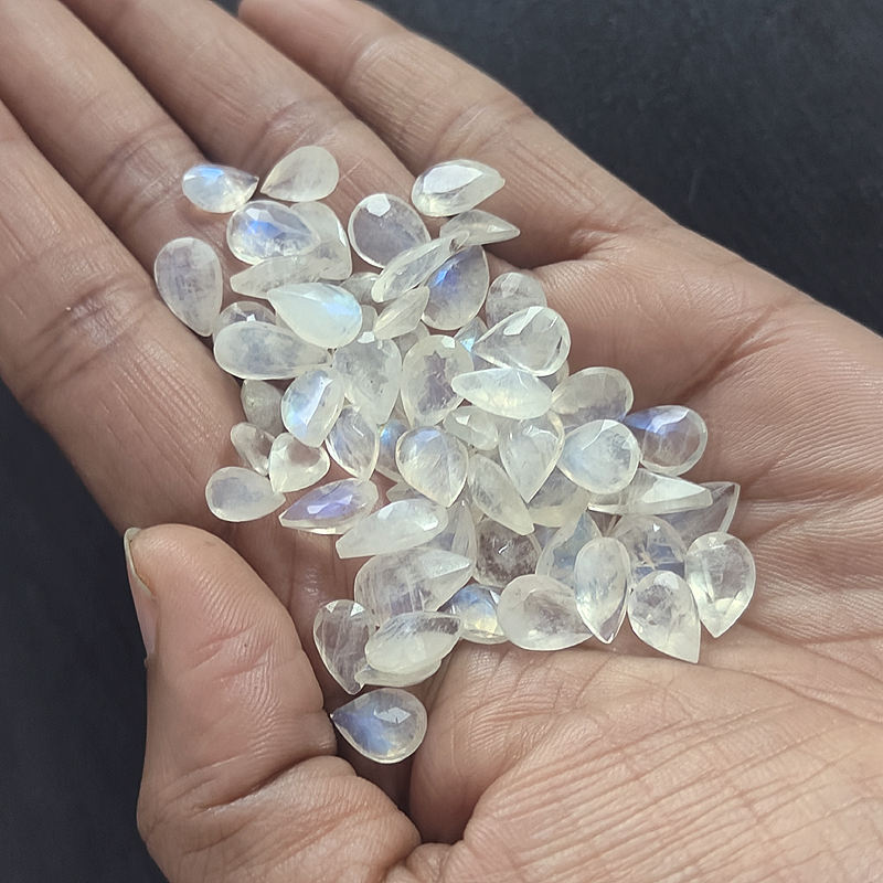 Gemstone:Rainbow moonstone 6x4mm to 12x8mm pear facet