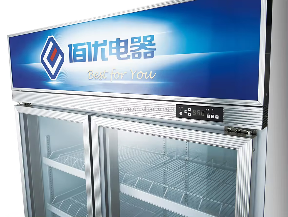 Réfrigérateur vertical à deux portes en verre 700L pour boissons, vitrine de boissons, congélateur pour boissons à vendre