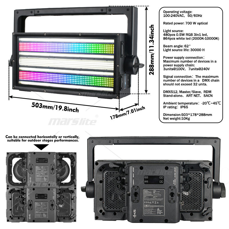 Lumière stroboscopique RGB 700W, connectable horizontalement ou verticalement, étanche IP65, lumière stroboscopique LED DMX pour DJ disco