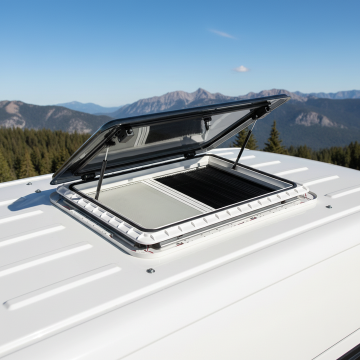 Puits de lumière pour camping-car 700x500mm avec éclairage LED Fenêtre de toit de caravane Étanche Blanc Puits de lumière pour camping-car