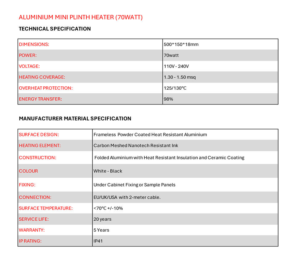 Nom du produit:Mini infrarouge KC portable 70W, mural, sans cadre, étanche, en verre.