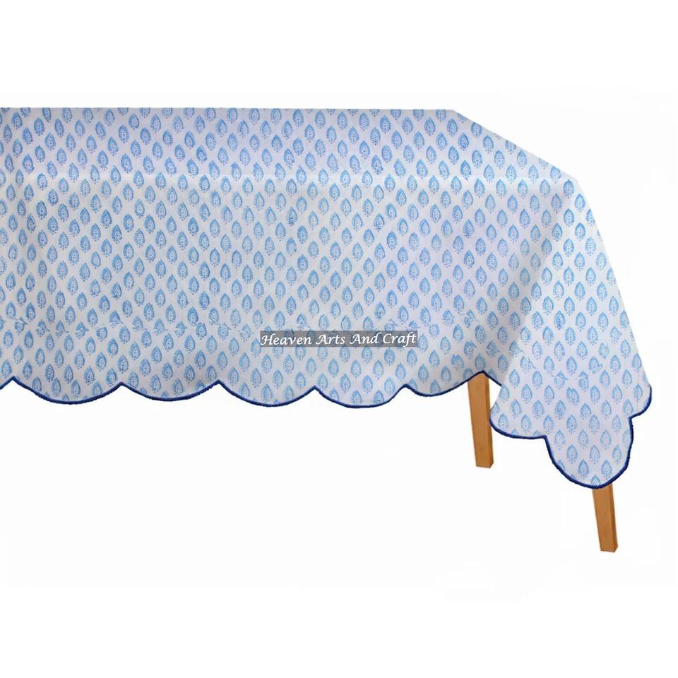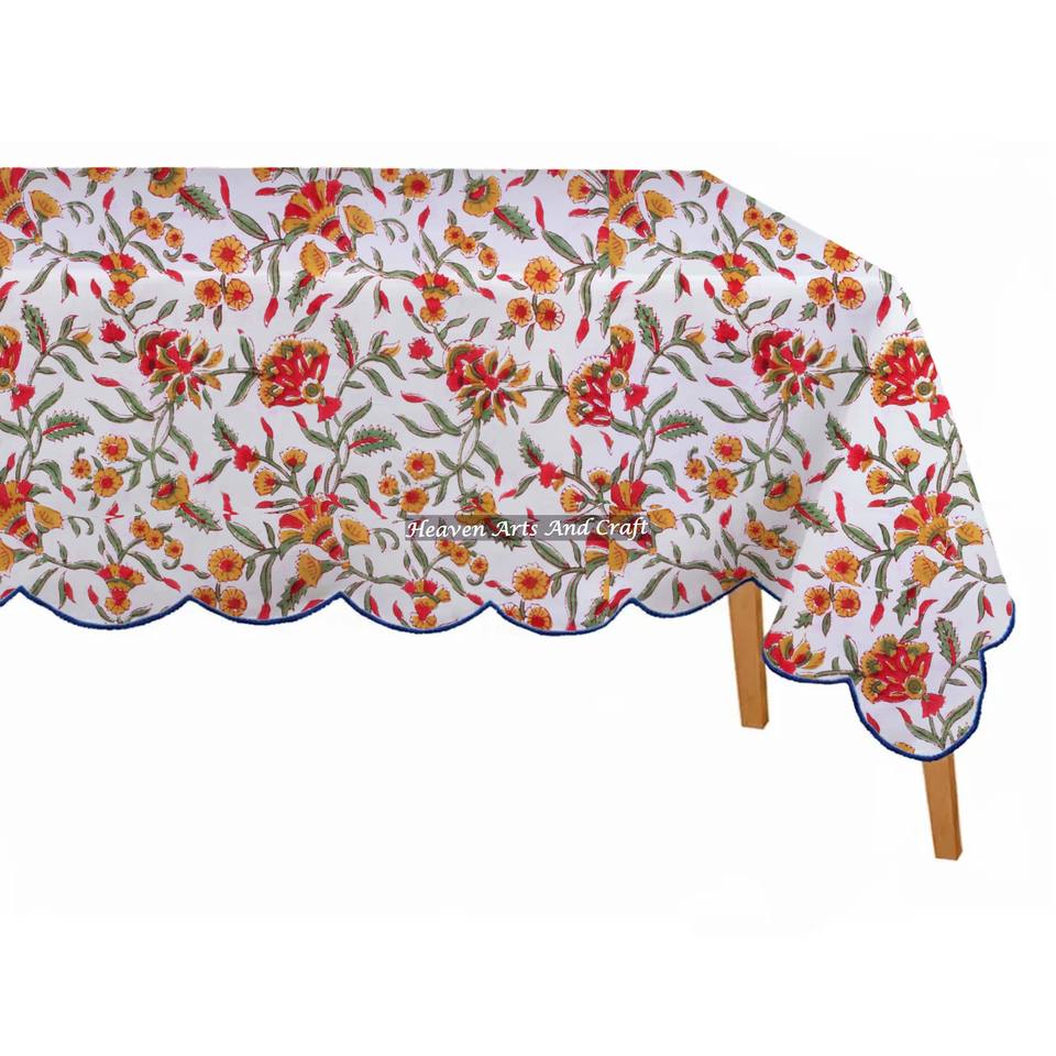 Nappe rectangulaire personnalisée en coton 100% imprimé à la main, motif festonné, 70x126 pouces