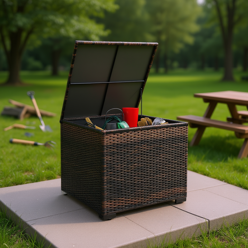Casier de rangement en rotin 71x71x60.5cm, unité de rangement carrée pour outils d'extérieur, structure en fer, dégradé marron