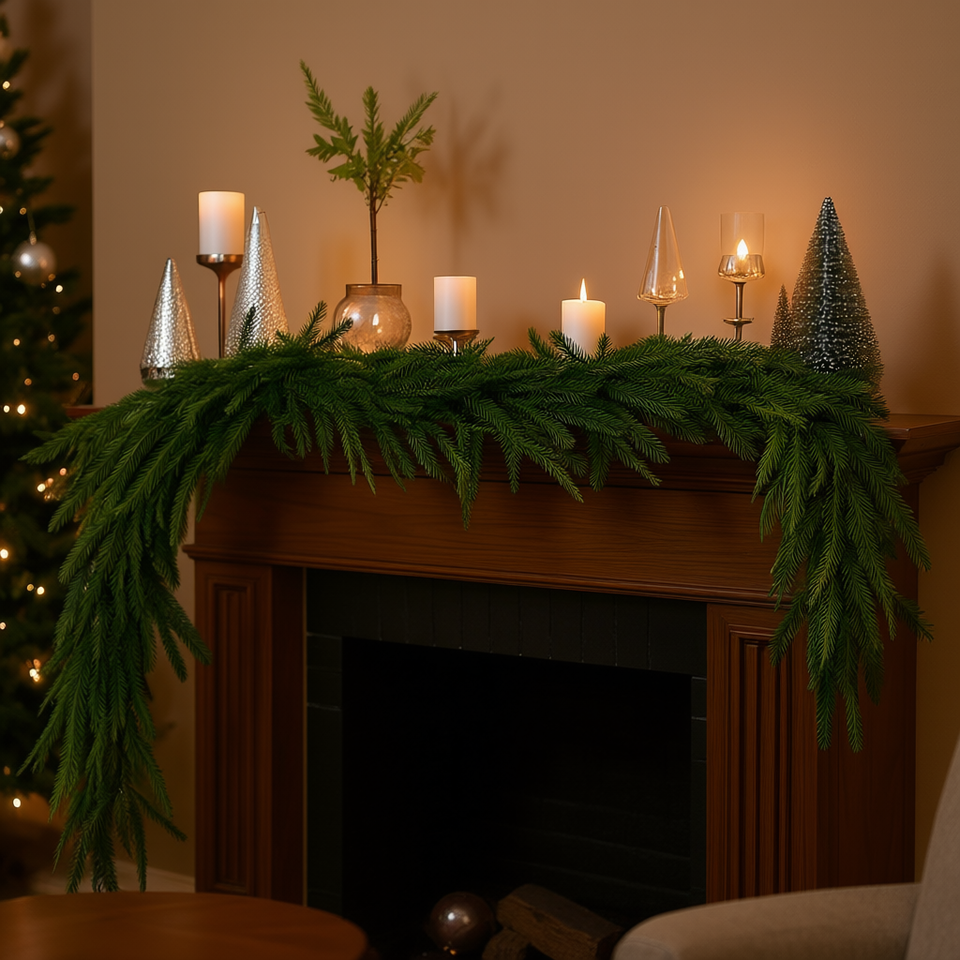 Guirlande artificielle de pin de Norfolk au toucher réel, 71 pouces, verte, pour décoration murale de Noël, couronne, fournitures de bricolage