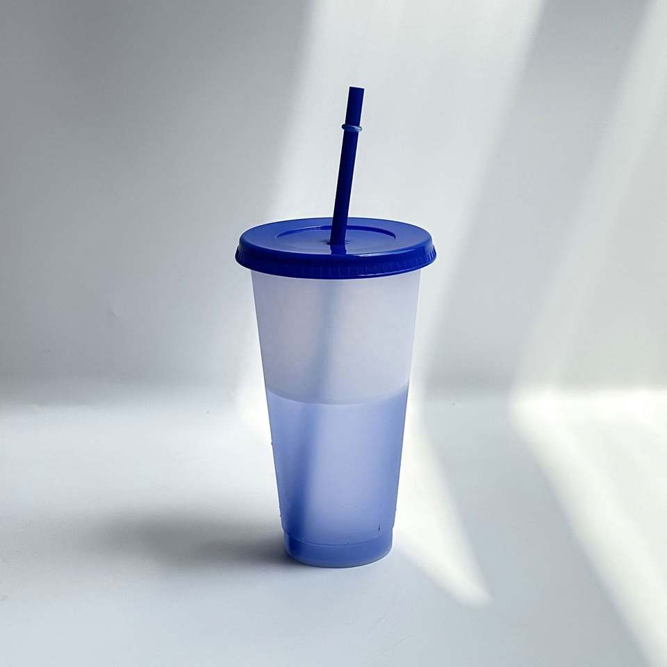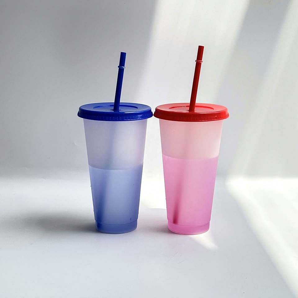 Gobelet 710 ml écologique style nordique, thermosensible, à couche unique, avec paille et couvercle en PP, imprimé sérigraphié, cadeau promotionnel