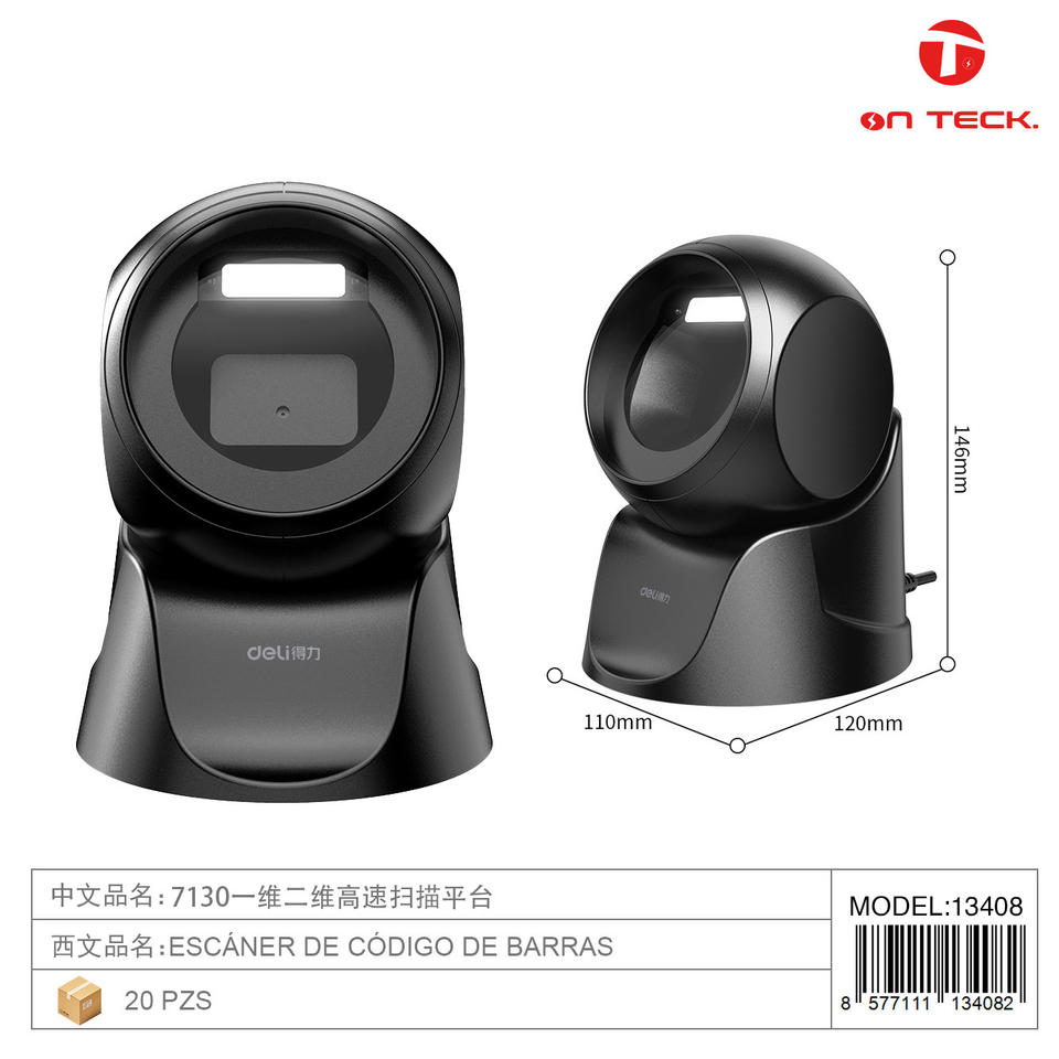 Plateforme de numérisation On Teck Sa De Cv 7130 1D 2D, noire, CMOS, interface USB, pour usage professionnel