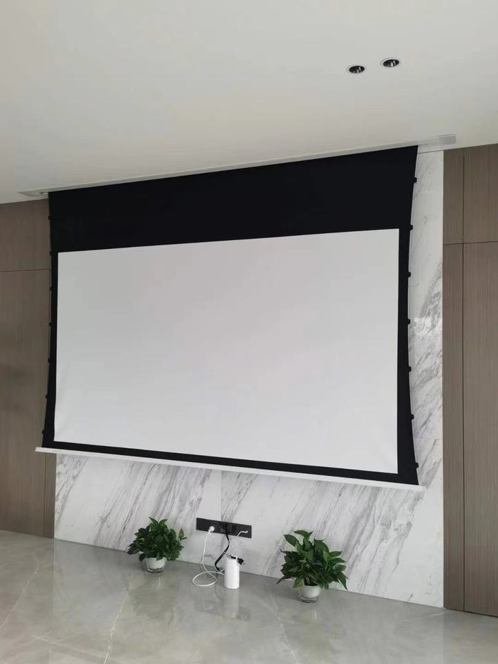 72 "-150" Écran de projecteur de tension à languette électrique/motorisée ALR moderne encastré au plafond et rejetant la lumière ambiante