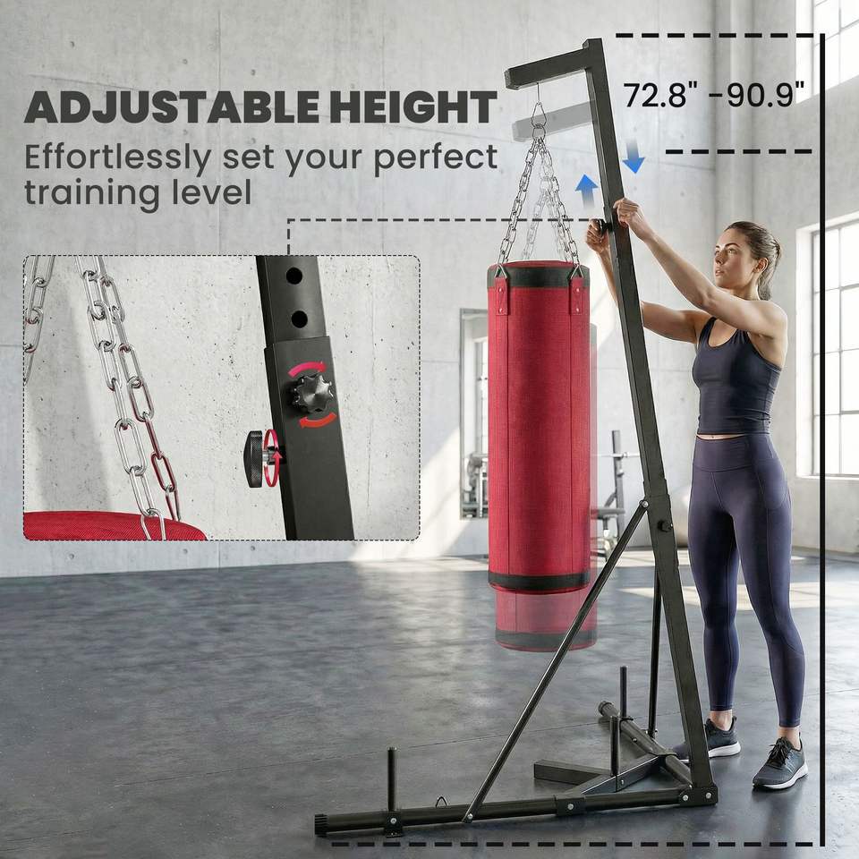 Support de boxe autoportant réglable en hauteur de 72,8 à 90,9 pouces avec sac de frappe en toile rouge pour adultes