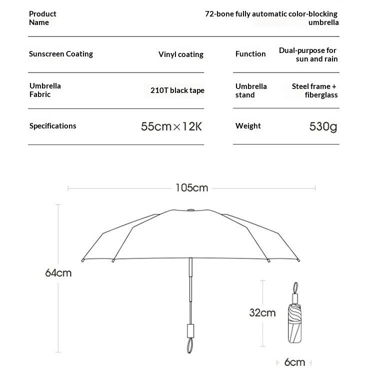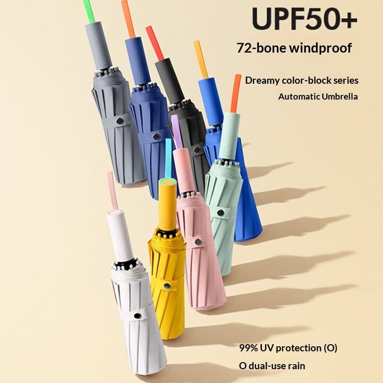 Parapluie pliant automatique robuste à 72 baleines, double usage (soleil et pluie), grand format, pour femmes et hommes
