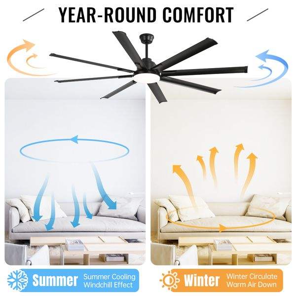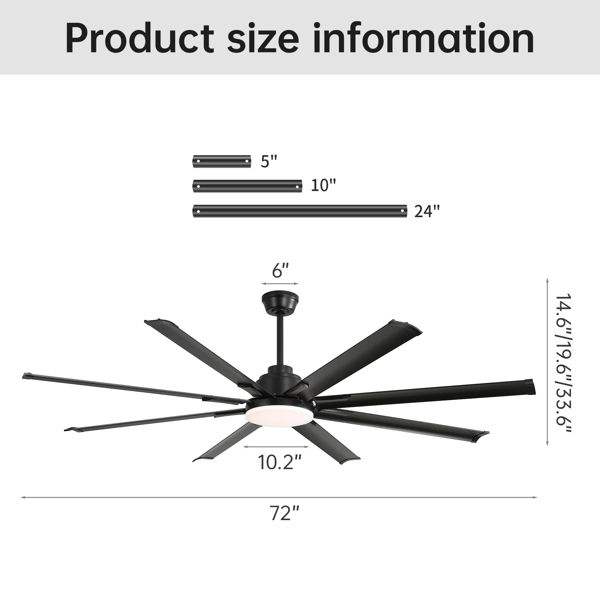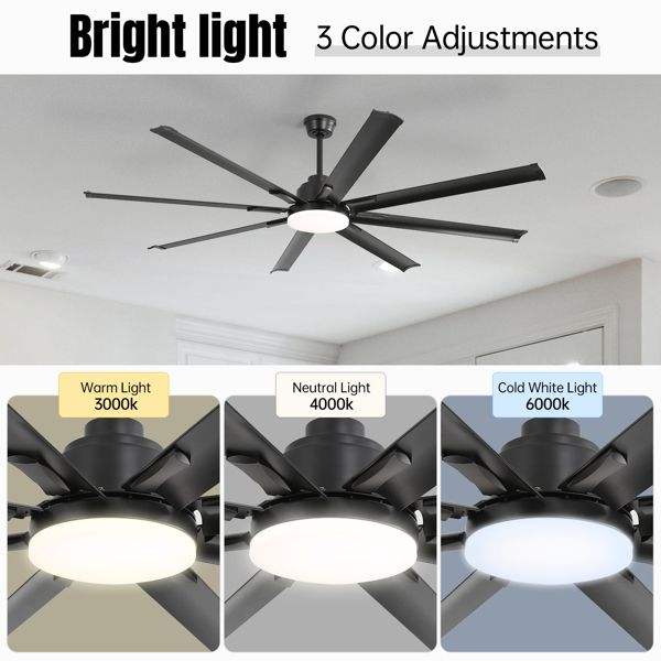 Ventilateurs de plafond modernes de 72 pouces avec moteur DC, télécommande intelligente, 6 vitesses de vent, pour salon, couleur noire