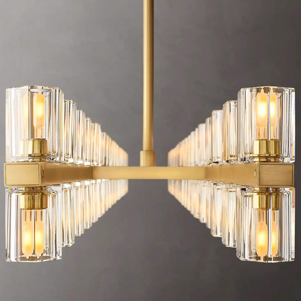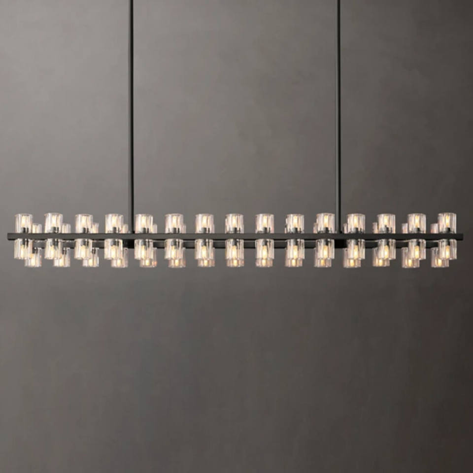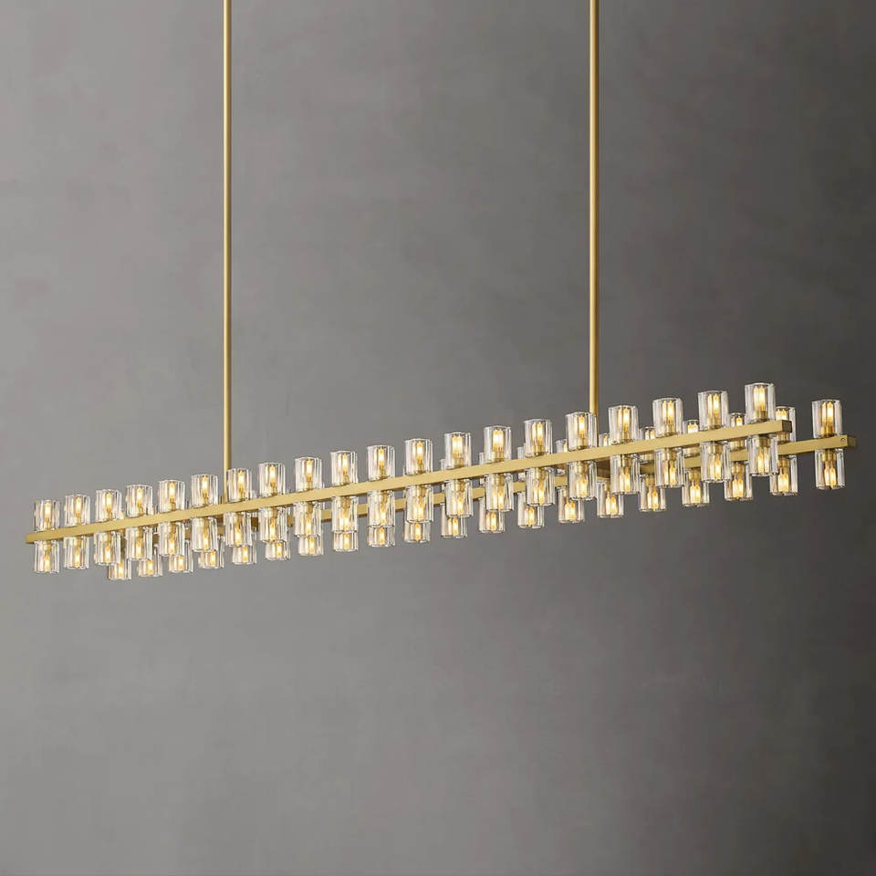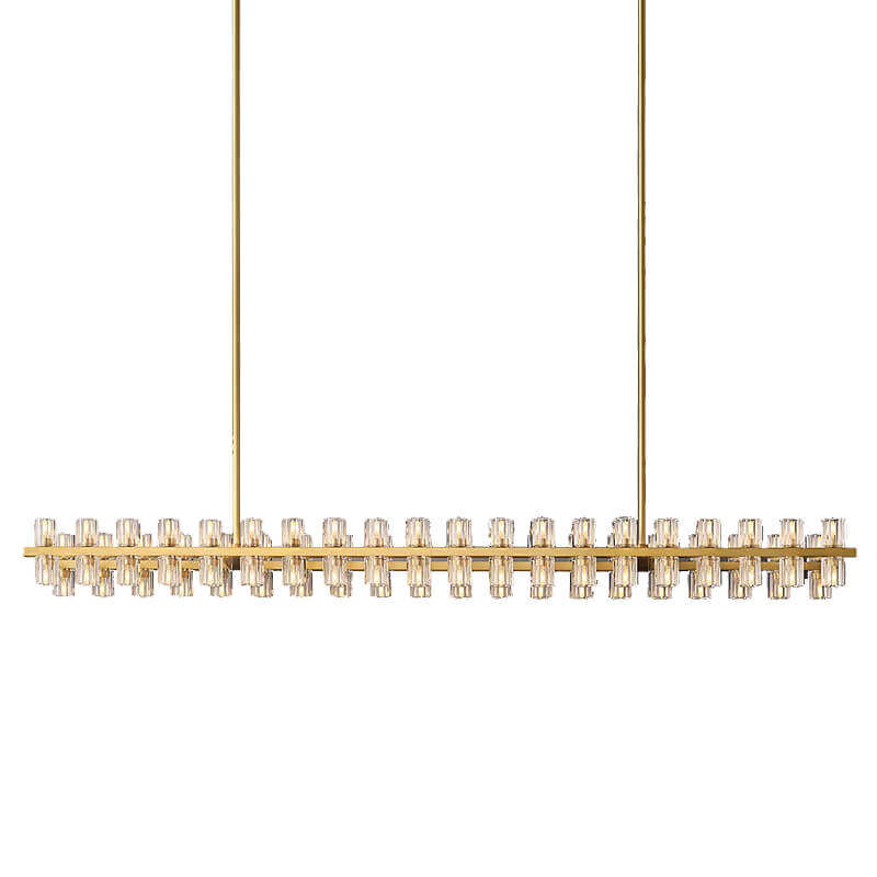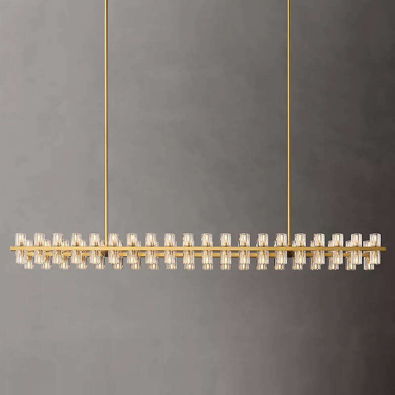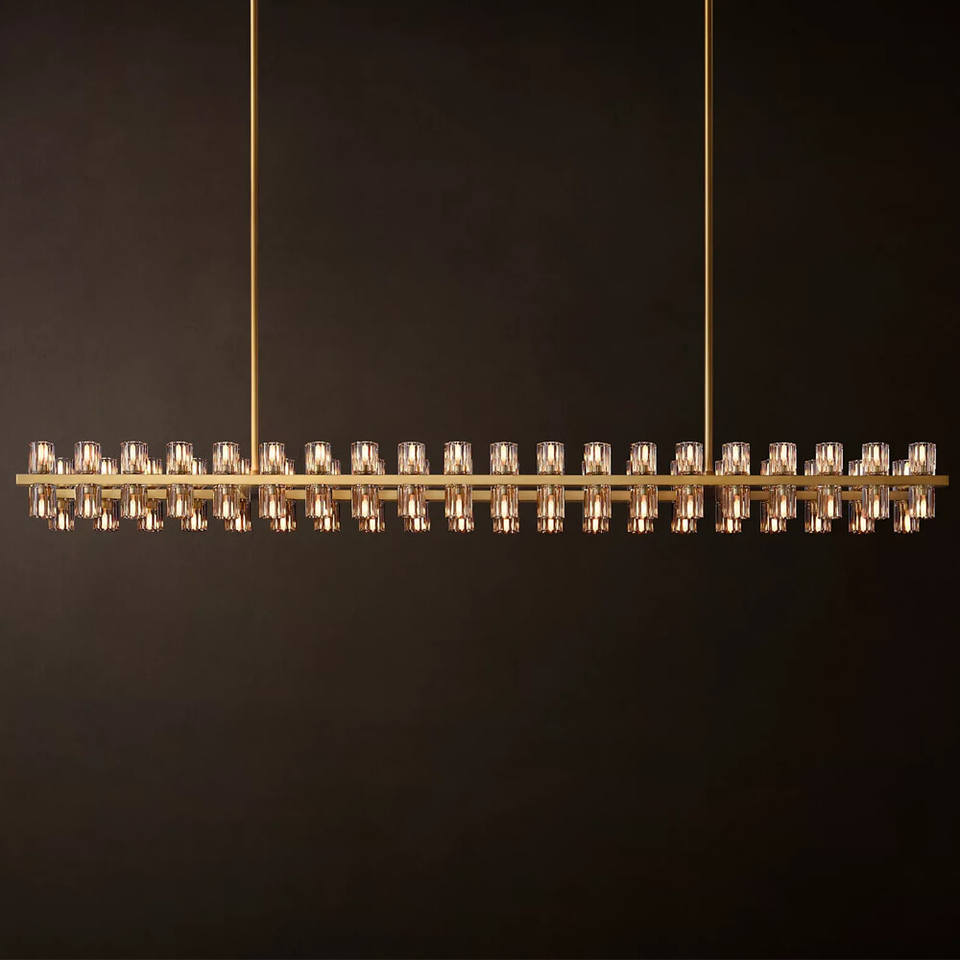 Lustre rectangulaire à LED en cristal de 72 pouces de long pour table à manger, îlot de cuisine, grand lustre en laiton américain
