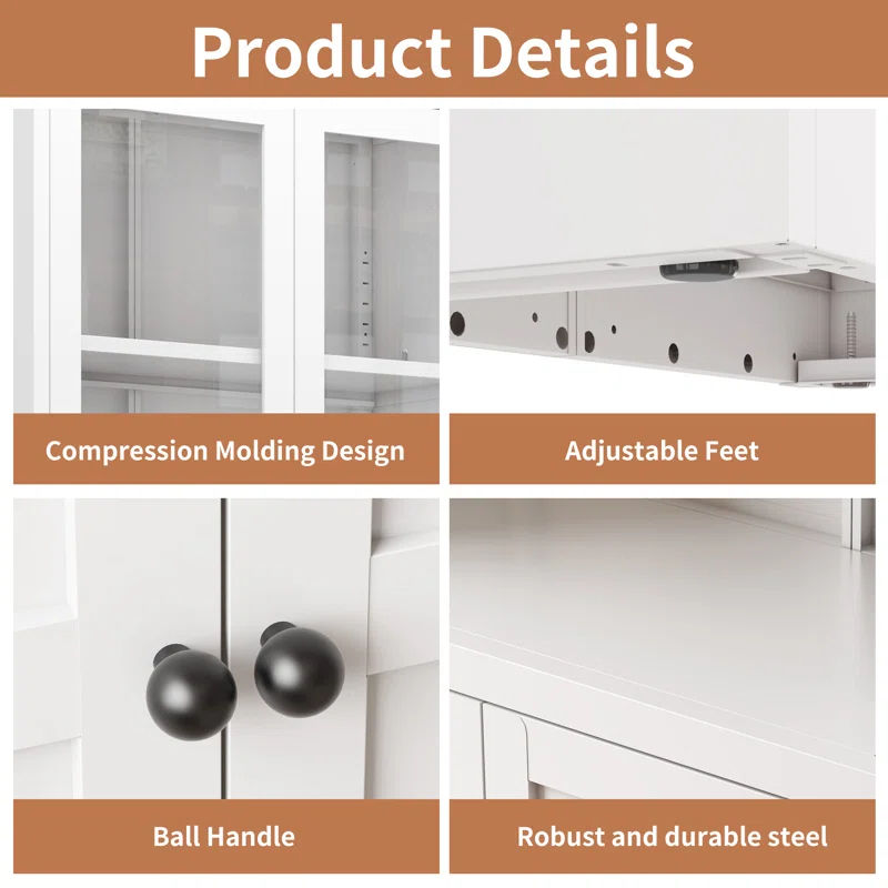 Armoire de cuisine en métal de 72 pouces de hauteur avec portes en verre, buffet autoportant à 5 niveaux avec étagères réglables pour garde-manger