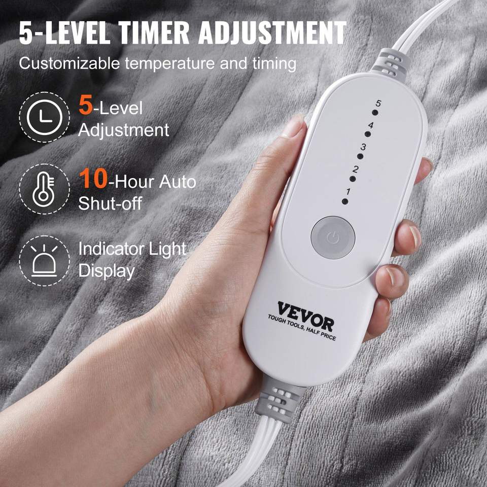 Couverture chauffante électrique en flanelle douce de 72'' x 84'' avec minuterie de 10 heures, arrêt automatique et 5 niveaux de chauffe