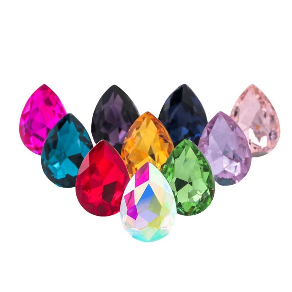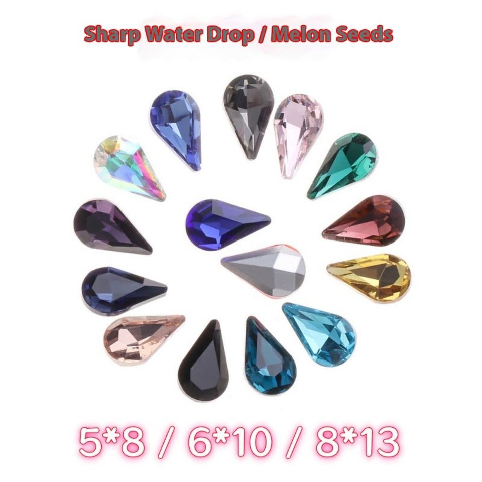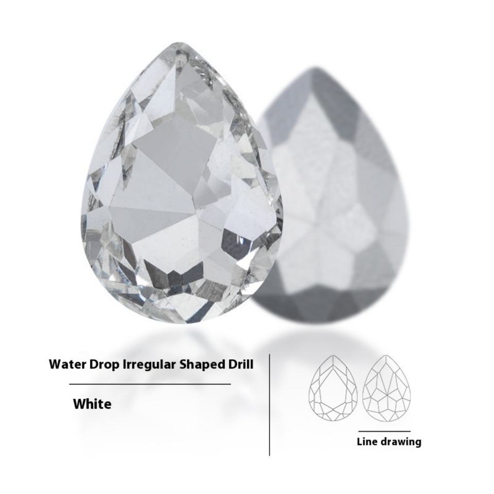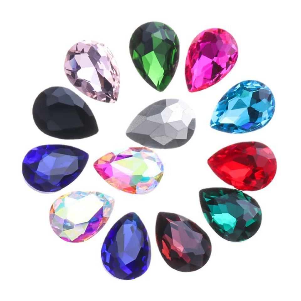 Commande minimum de 720 pièces, strass en verre en forme de goutte d'eau à fond pointu, diamant irrégulier, base en argent véritable, pour vêtements