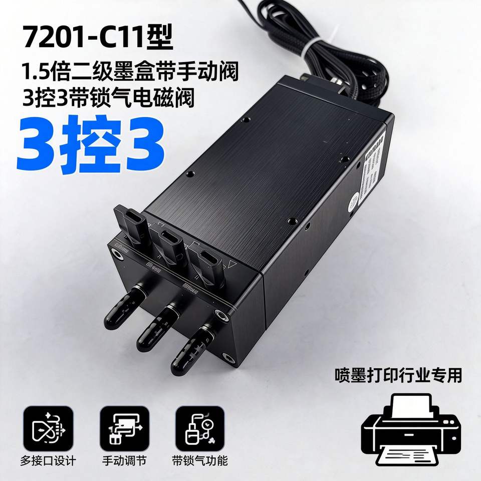 7201-C11 Cartouche d'encre à double étage 1,5x avec valve manuelle, électrovanne à 3 positions et 3 étages, résistante à la corrosion, Zero