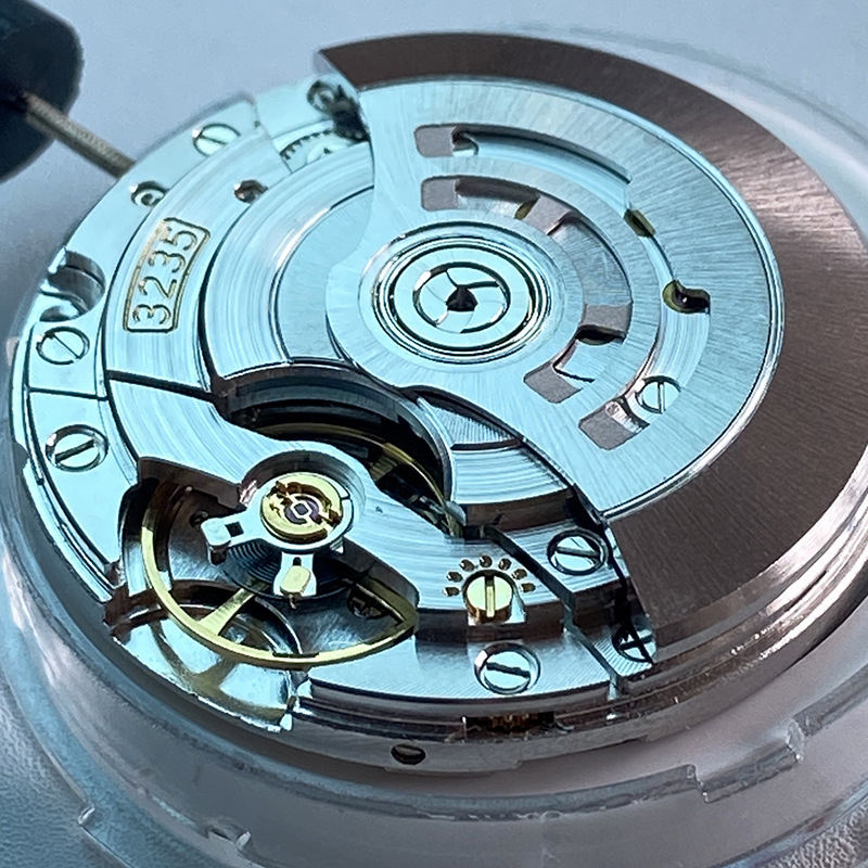 Mouvement 3235 avec réserve de marche de 72 heures, affichage de la date, fonction de réglage rapide, version blanche, ressort bleu intégré, mouvement intégré de marque.