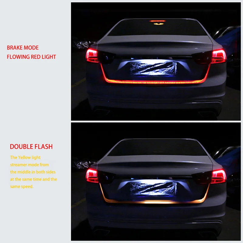 72LED voiture coffre arrière feu arrière LED bande colorée dynamique coulant frein arrière suivre clignotant lampe Auto lumière supplémentaire