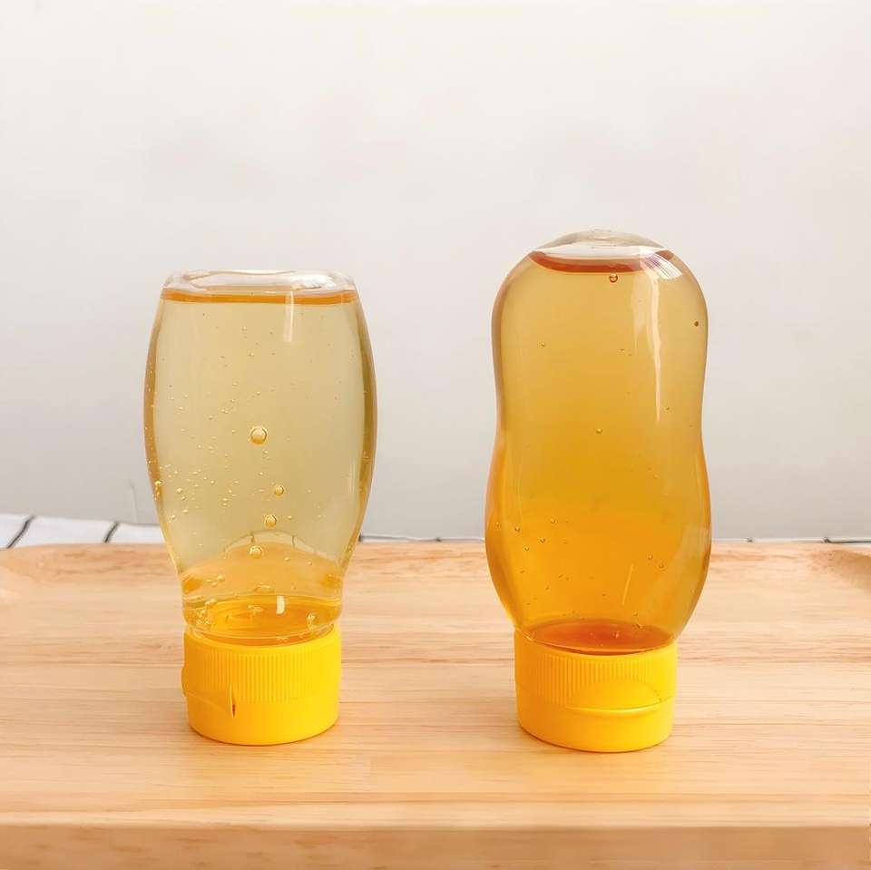 Bouteille de miel mini en plastique PET de 72 ml 100 g, pot d'emballage vide, bouteille souple pour miel, petit récipient sérigraphié avec bouchon en silicone