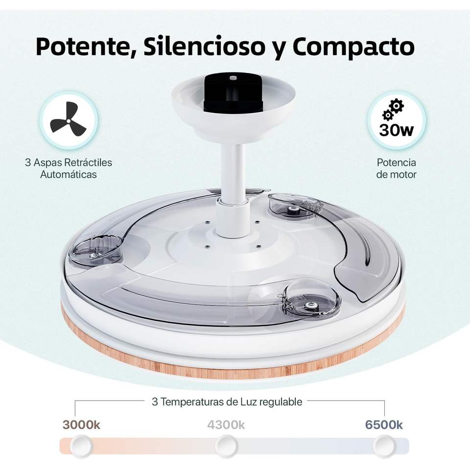 Ventilateur de plafond LED 72w 7590LM avec télécommande, moteur DC, minuterie, 6 vitesses, pales rétractables, 3