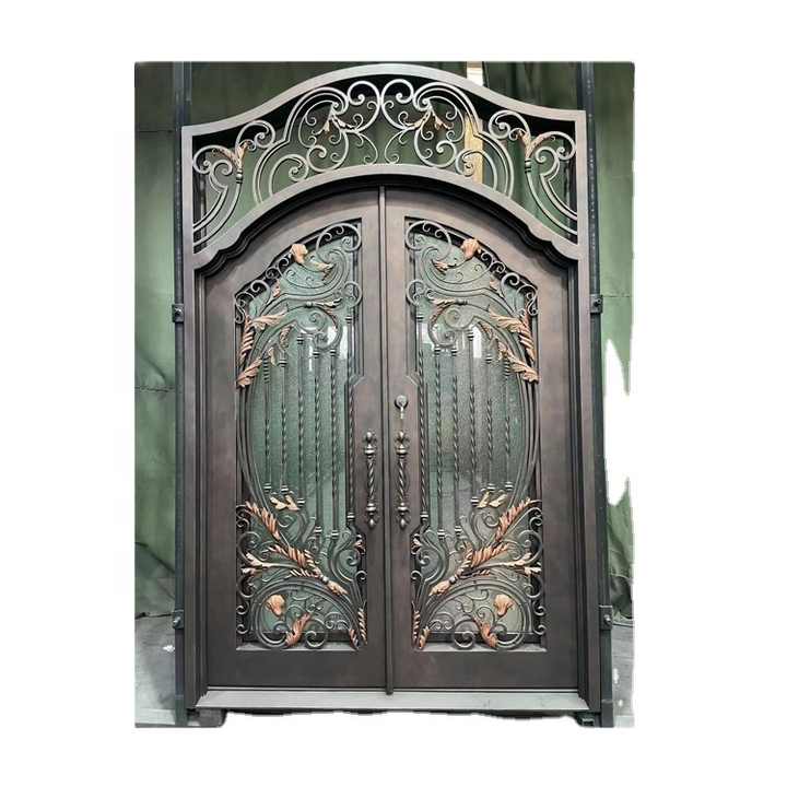 Portes doubles en acier de sécurité 72x84, prix bas, porte d'entrée en acier à double battant, design graphique industriel en verre de Chine