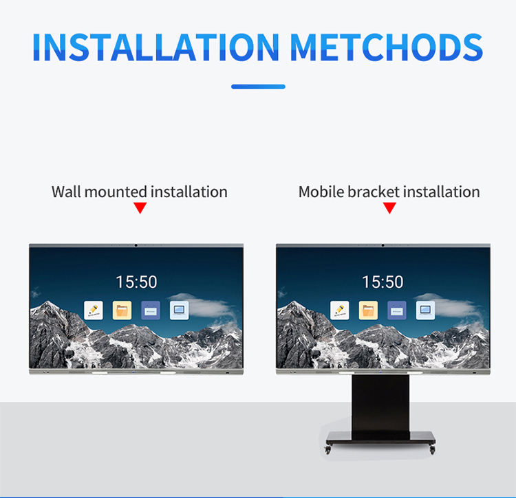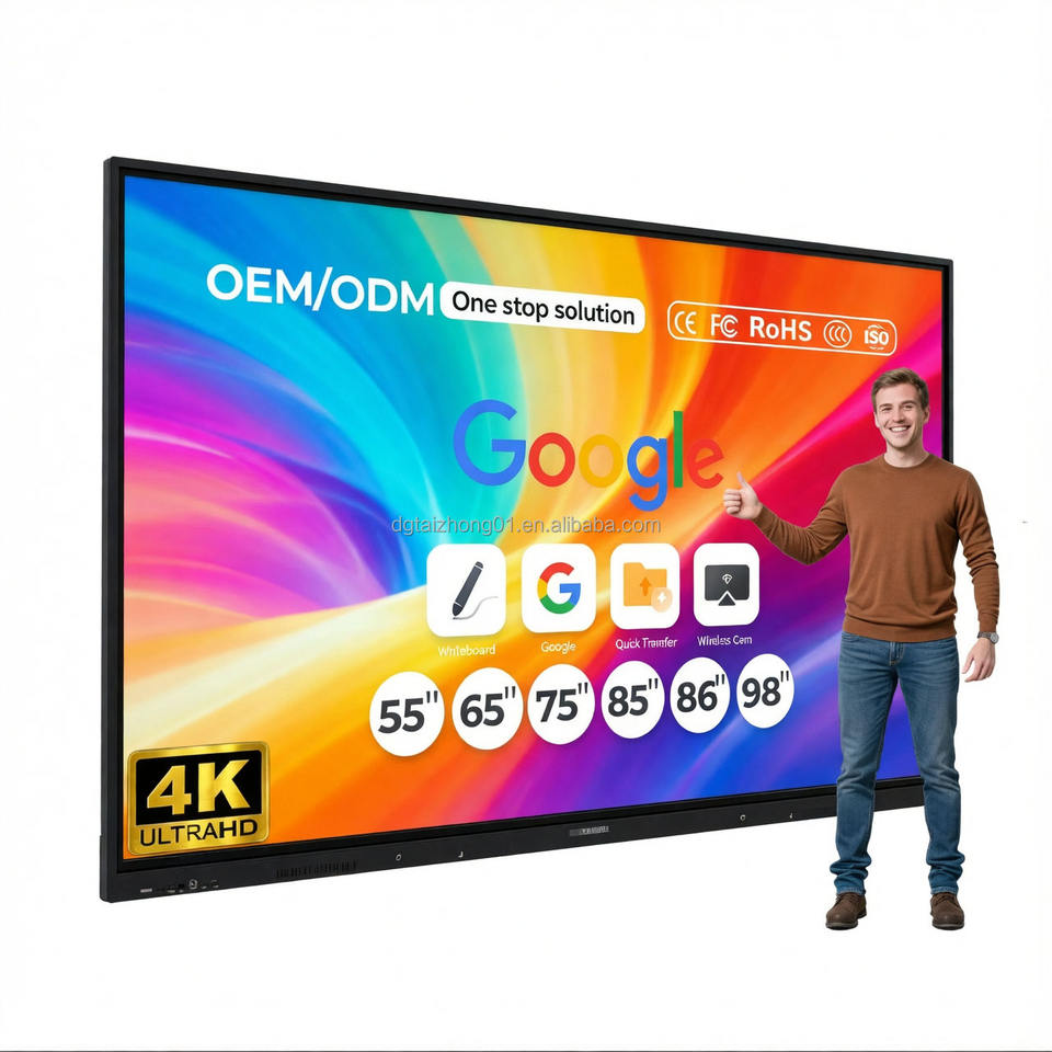 Écran plat interactif de 75 à 110 pouces, 4K UHD, 20 points tactiles, système double Android et Windows, haute luminosité 400 nits, pour les bureaux d'entreprise
