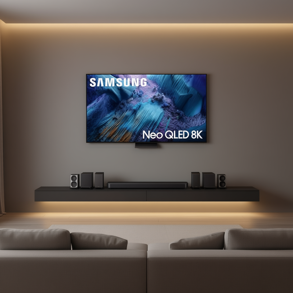 Téléviseur intelligent Mini LED 75 pouces (Modèle 2025) Classe 8K Processeur IA Gen3 Étalonnage IA 8K Système Home Cinéma Série Q 11.1.4 canaux
