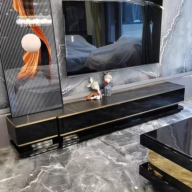 Ensemble de table basse et support tv assorti en acier inoxydable, table basse moderne mable, 75 pouces, 2 pièces