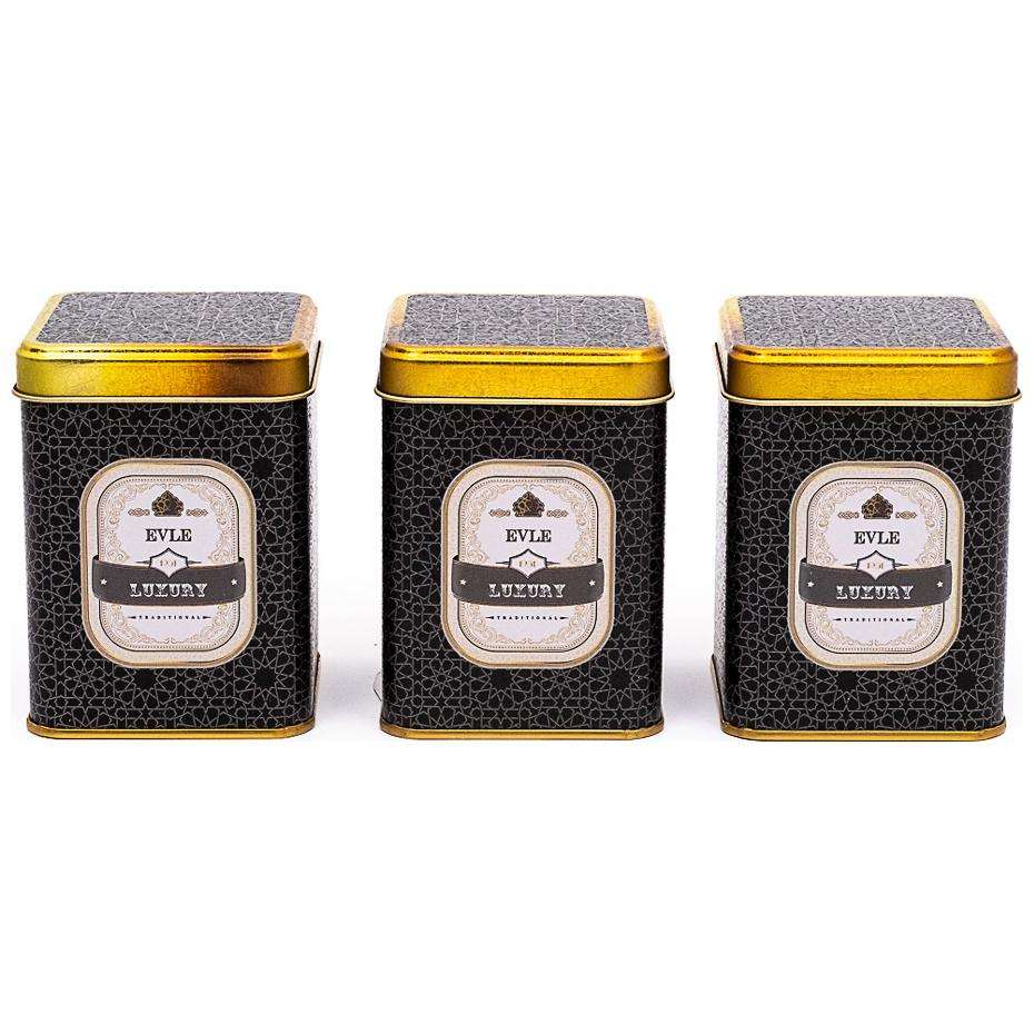Boîte carrée en métal 75x75x100mm (lot de 3) motif géométrique doré fond noir Trellis Design