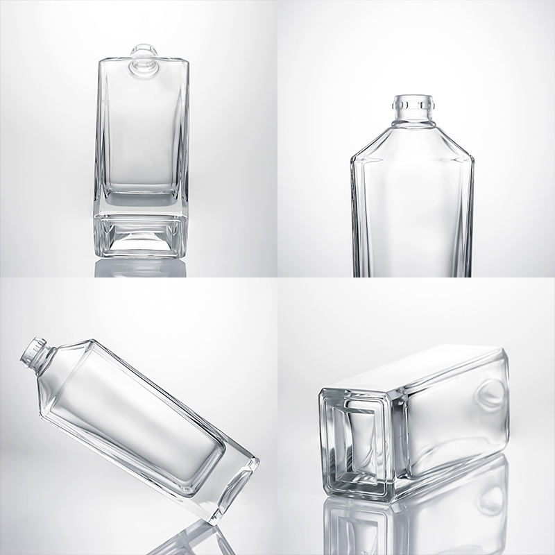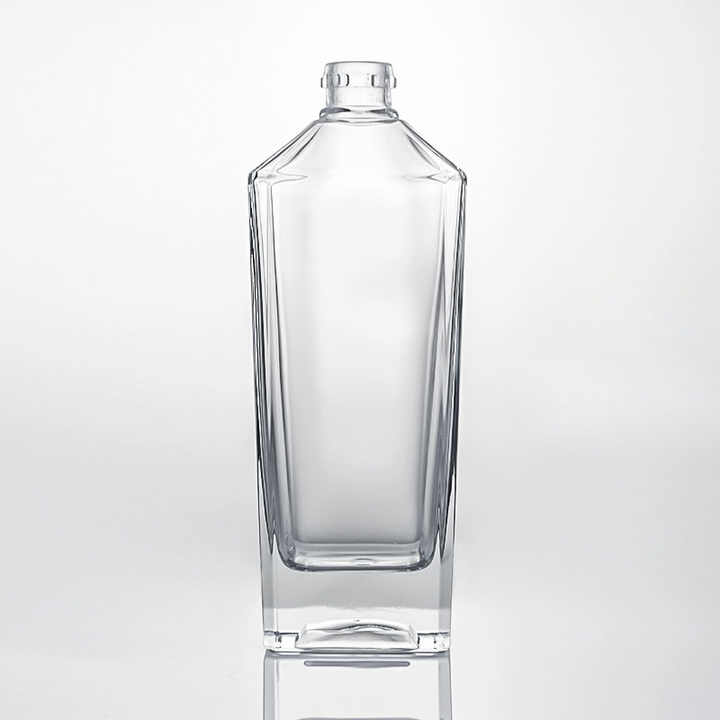 Bouteille en verre de 750ml 700ml 500ml 350ml Source personnalisée en usine Guara carré col court fond épais incliné épaule Gin rhum