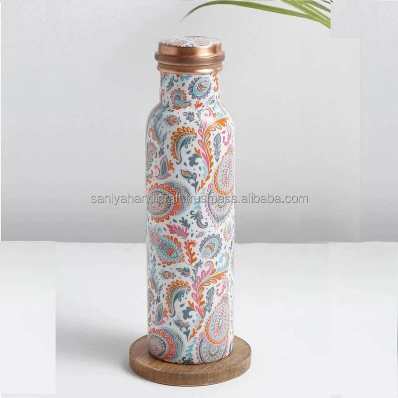 Bouteille d'eau en cuivre 750ml fabriquée à la main pour filles Design d'ange imprimé avec finition décorative cadeau d'anniversaire parfait