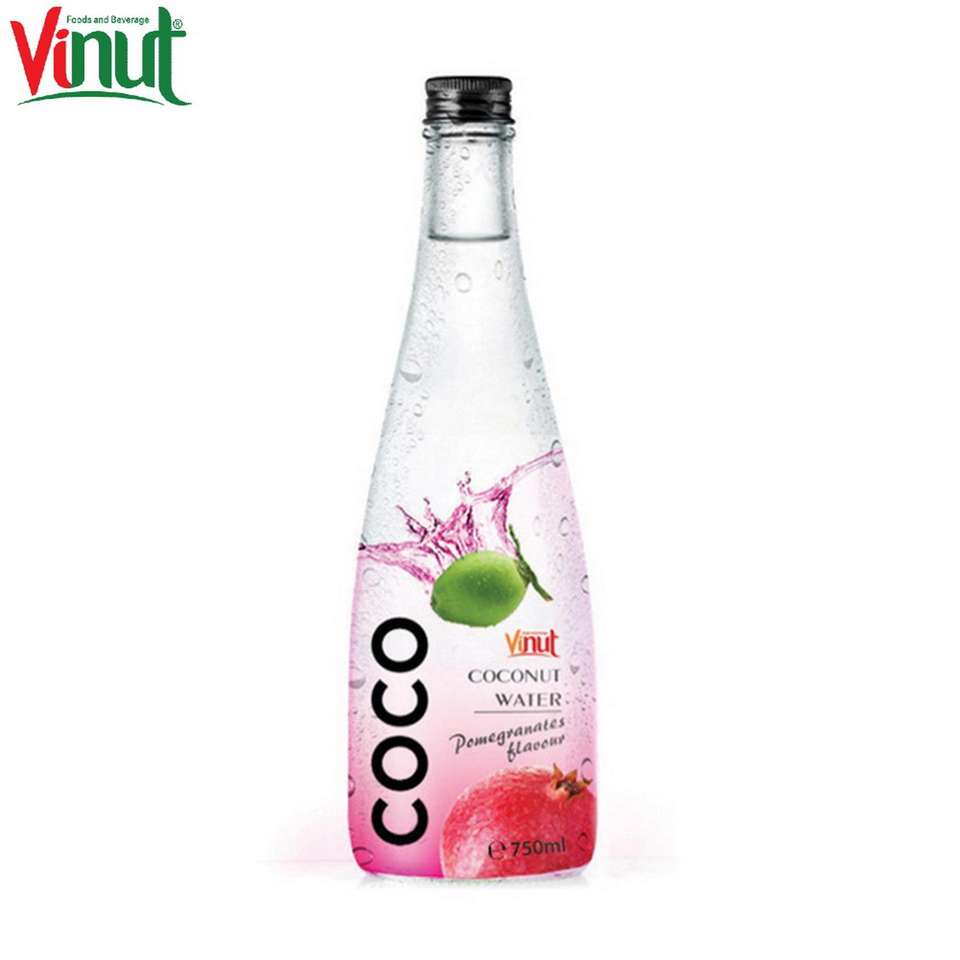 Bouteille en plastique 750ml d'eau de noix de coco avec grenade étiquette blanche grossistes usine directe à faible teneur en glucides BRC certifié Vietnam