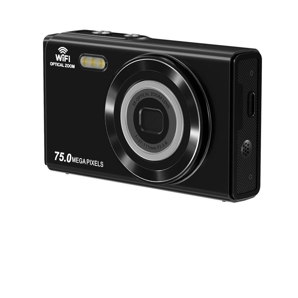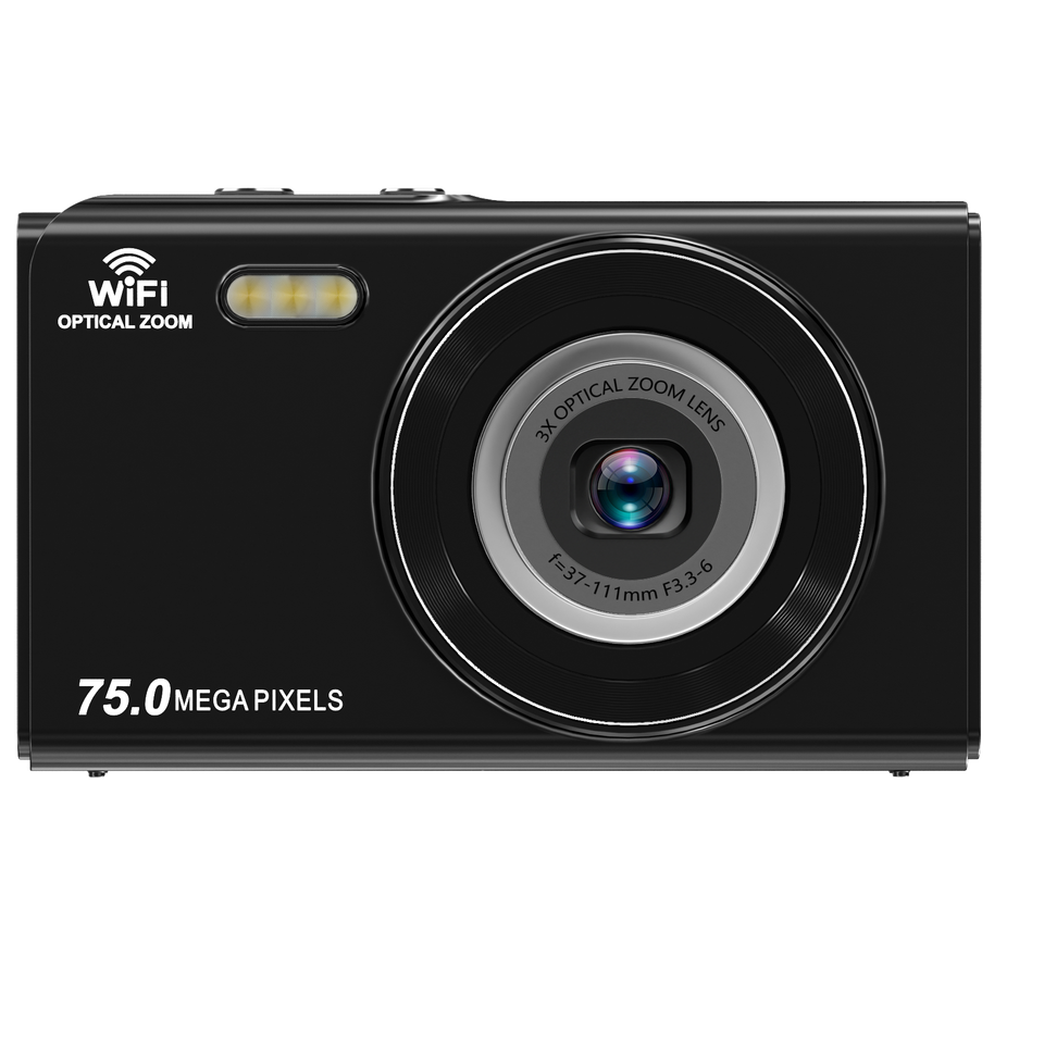 Appareil photo numérique WiFi 75MP 4K avec écran IPS de 2,8 pouces, objectif zoom rétractable, zoom optique 3X, caméra de poche pour étudiants pour la photographie sur le campus et le vlog