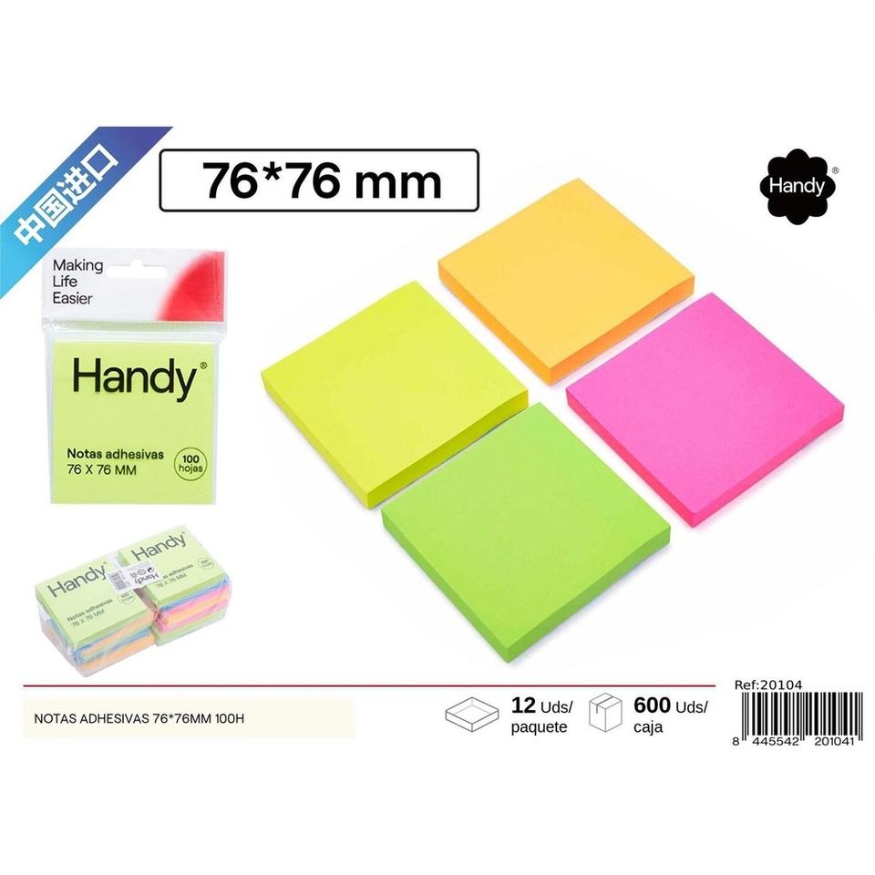 Note autocollante 76*76mm (4 couleurs fluorescentes)-Fournitures de bureau et post-its