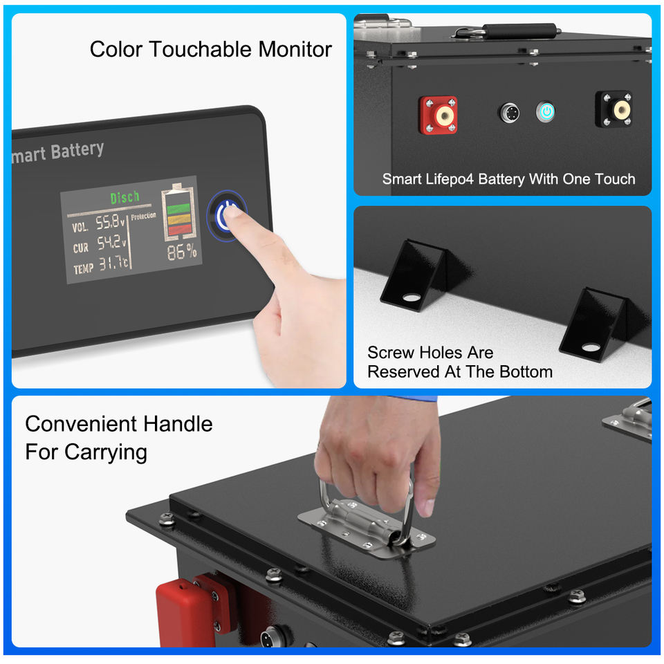 76.8V 200Ah LiFePO4 Battery Deep Cycle Rechargeable with BMS LCD Display for Golf Cart