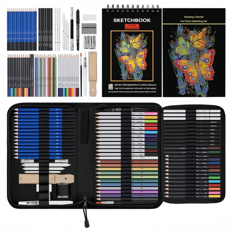 Lot de 76 ensembles de dessins kit de dessins professionnel kit de croquis complet avec crayon de couleur aquarelle au fusain de graphite pour artistes