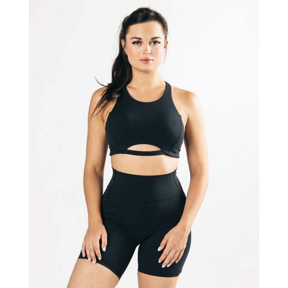 Soutien-gorge de sport noir respirant pour femme, 78% Nylon, 22% élasthanne, col montant, dos nageur, ourlet sans attache, Support moyen, noir