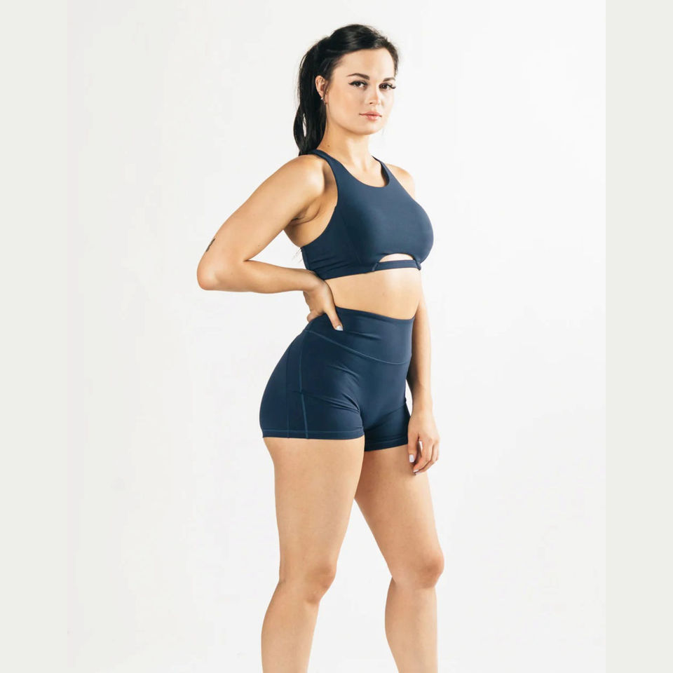 78% Nylon 22% Elastane Lightweight High Neck Racer Back Bindingless Hem Womens Medium-Support One Piece Velvet Teal Sports Front